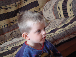 I hope this doesn't offend anyone, but I had to take this photo of Oliver. Without taking his eyes off the television, he moved his potty up against the couch (he has to place it in the same spot every time!). He also has to hold his shirt up around his armpits - why, I have no idea! I think he sat here for 5 minutes and when he got up, he had a red ring around his bottom from the seat!! ROFLOL. Like father like son!